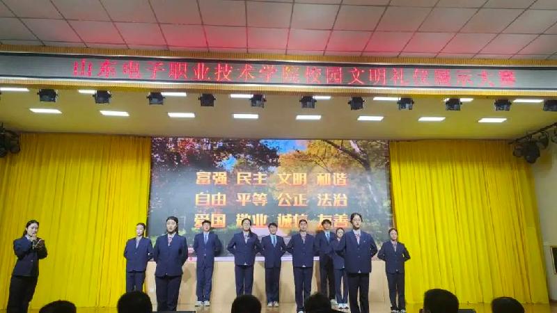 伴着轻松明快的音乐、动感活泼的节奏,山电的帅哥靓女们如“职场精英”,迈着自信轻盈的步伐,从容优雅地展示着文明礼仪风采,这是我校校园文明礼仪展示大赛的现场,他(她)们就是校园最亮的星。