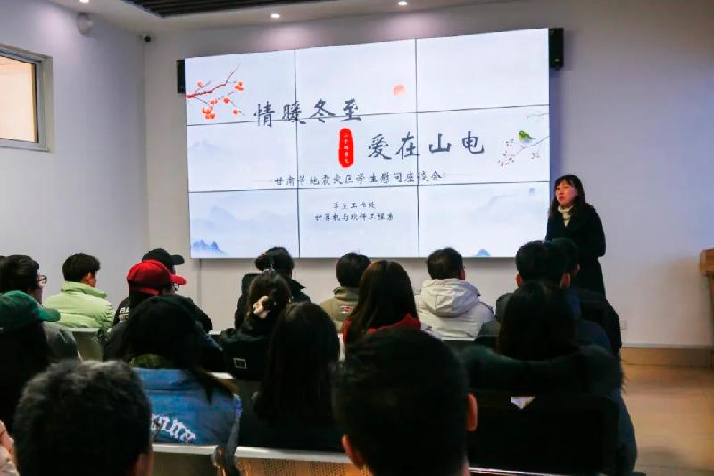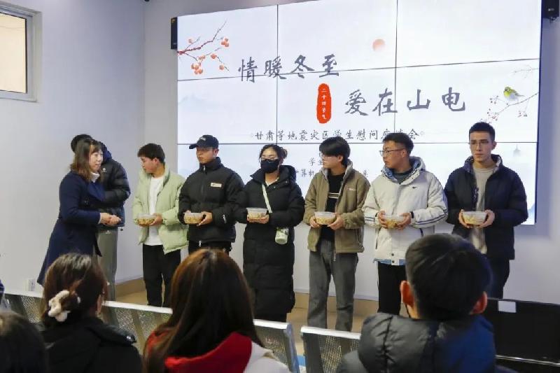 情暖冬至,爱在山电。12月21日,学生工作处和计算机与软件工程系在“一站式”学生服务大厅共同举办“情暖冬至,爱在山电”--甘肃等地震灾区学生慰问座谈会。学生工作处副处长王佩、资助中心老师李友、计算机与软件工程系团总支书记王文静及系全体辅导员参会。计算机与软件工程系全体甘肃、新疆籍在校学生参加。活动由王文静主持。