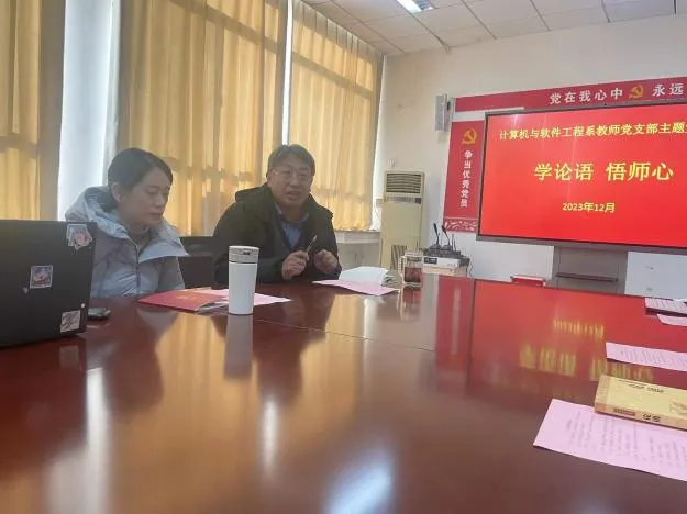 为学习先贤智慧,感悟师道人生,12月21日下午,计算机与软件工程系教师党支部在504组织开展“学论语 悟师心”主题党日活动。