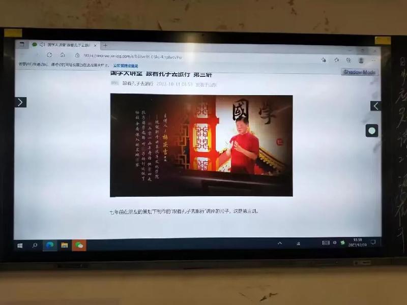 子谓子产:“有君子之道四焉,其行己也恭,其事上也敬,其养民也惠,其使民也义。”借中华文化之源远流长,品五千年文明史之韵味。为提高我系学生对历史与文化的探究,对中华历史的传承,于12月20日晚,我系组织学生观看“国学大讲堂跟着孔子去旅行第三讲”线上直播。