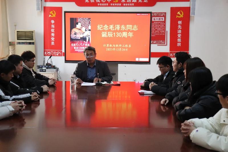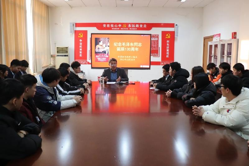 为领悟毛泽东思想的深刻内涵,激发学生的创造力、凝聚力和战斗力,促进学生自身发展,12月26日,我系主任刘学于综合楼504为2023年入党积极分子开展“纪念毛泽东同志诞辰130周年”专题党课。