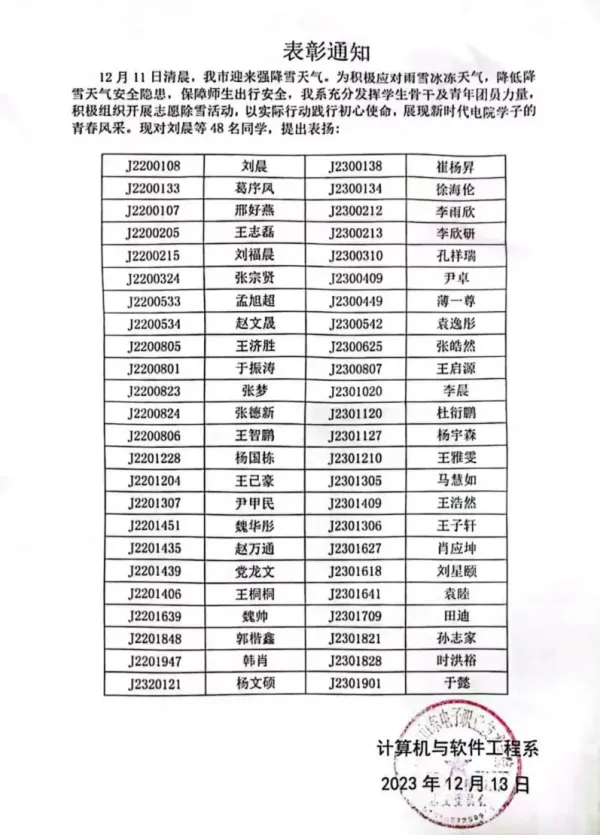 2. 我系学生骨干及青年团员力量积极参与除雪活动,以实际行动践行初心使命,展现山电学子的青春风采。
