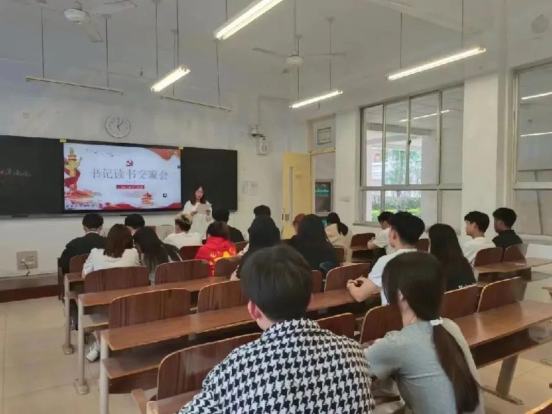 习近平总书记在党的二十大报告中明确指出:高质量发展是全面建设社会主义现代化国家的首要任务。为了让广大青年学习宣传贯彻习近平总书记重要讲话精神和全国两会精神情况,了解在全面建设社会主义现代化国家新征程上书写的发展新篇章。我系于4月17日在2103教室举行“书记读书会”。