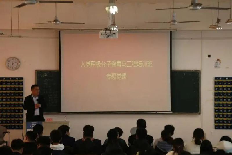 为扎实开展学习贯彻习近平新时代中国特色社会主义思想主题教育,深入学习贯彻落实党的二十大精神,加强入党积极分子对党章的学习,引导全体入党积极分子增强党章意识、锤炼党性品质,12月8日,我系于阶梯二开展入党积极分子暨青马工程培训班专题党课,本次党课由思政部何伟担任主讲,我系2022级全体入党积极分子参加。
