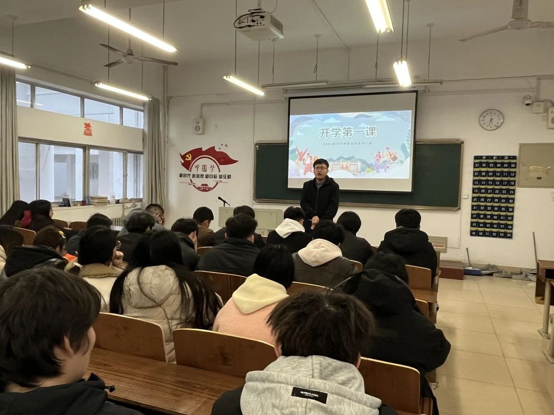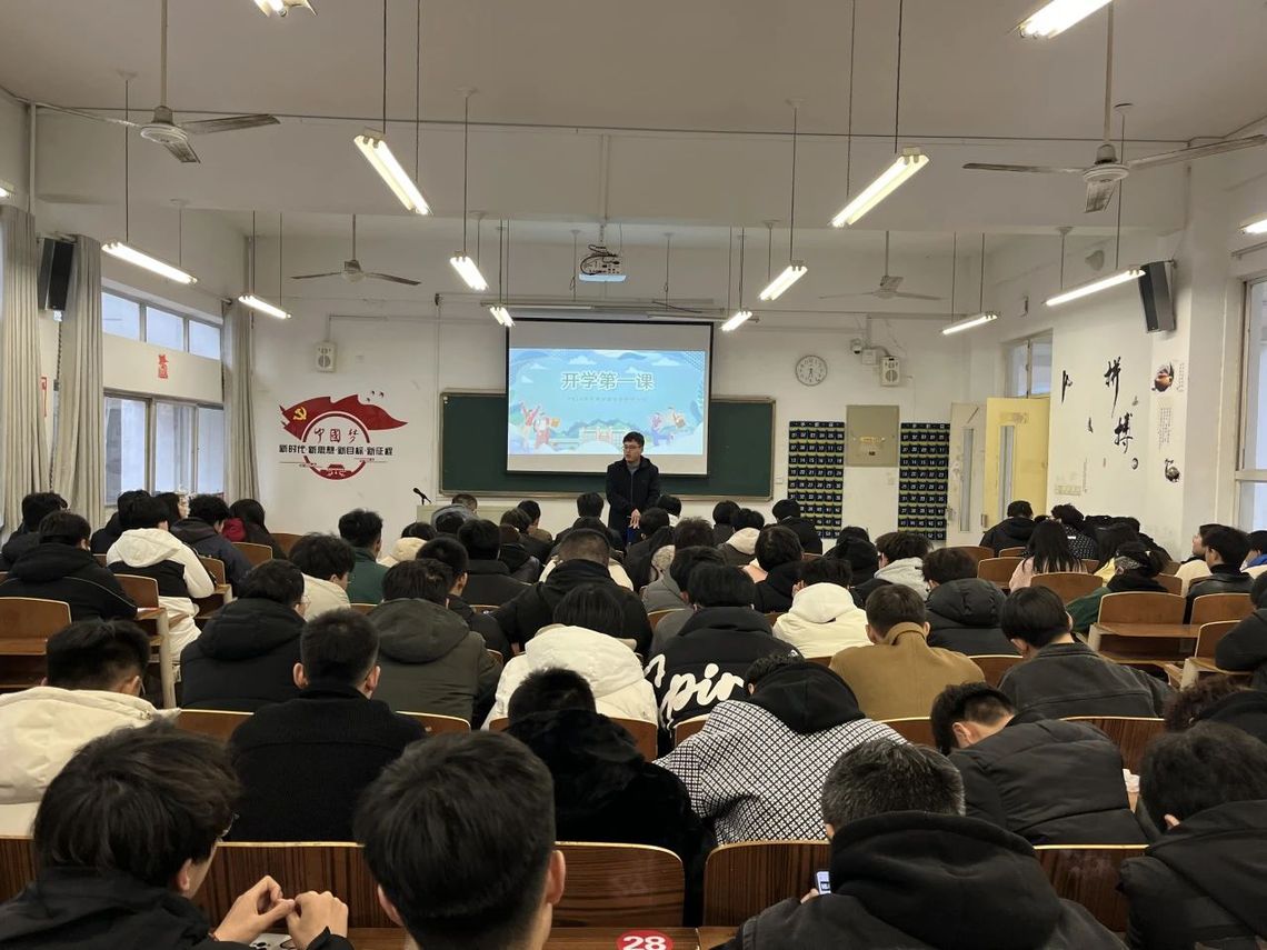 凛冬散尽,暖春归来。迎着清晨的朝阳,沐浴着微寒的春风,山东电子职业技术学院迎来了开学的日子;校园里欢声笑语,幸福和喜悦洋溢在每个人脸上。为迎接新学期的到来,J22003、J22004、J22006于3月3日上午组织召开了“开学第一课”主题班会。由辅导员李荣辉主持班会,全体同学参加。