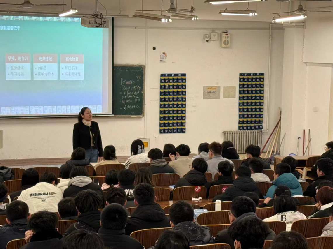 班会中,马道飞积极引导同学们“倒好时差”紧起来,“上紧发条”动起来,保持良好的学习与作息习惯,制定好新学期的学习计划,在提升专业能力素养的同时也注重在生活中提升自身修养。