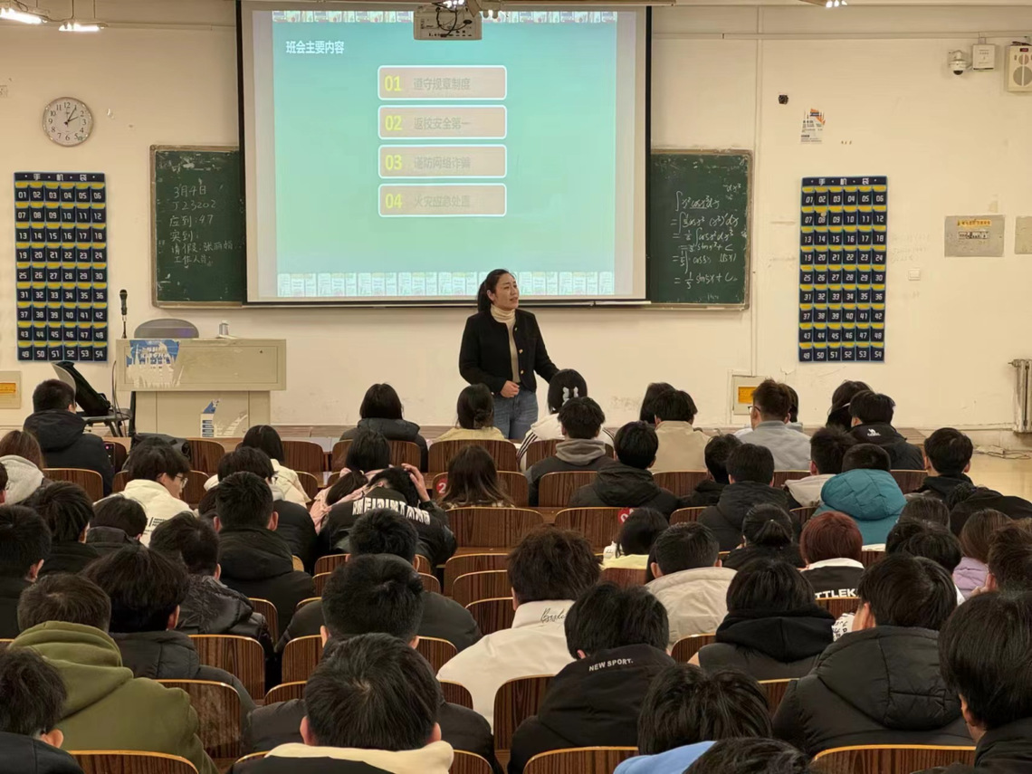 春风化雨、万物新生。为落实立德树人根本任务,为进一步加强同学们的安全教育与管理,坚守安全底线、统筹发展和安全,在开学之际引导学生积极融入校园生活,增强学生安全防范意识和自我防护能力,提高学生应急能力,严防各类安全事故的发生,3月14日,J23009-J23014班在辅导员马道飞的带领下召开了“护航新学期 关爱伴成长”主题班会。
