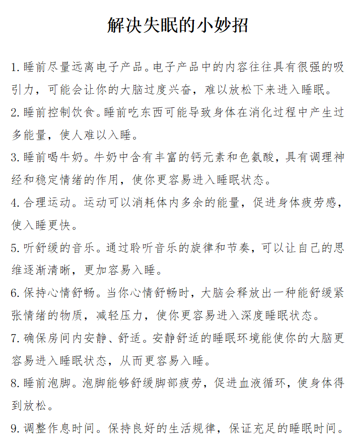 前期,我系通过问卷调查的形式,调研了解在校生的睡眠质量情况,共收集问卷九百余份。问卷显示,其中有40%的在校生无睡眠障碍,32%的在校生有可疑失眠现象,28%的在校生存在失眠障碍。通过问卷结果,我们收集了很多关于避免失眠的小技巧,并对我系学子进行分享,希望可以通过一些简单的小tips使同学远离失眠,健康睡眠。
