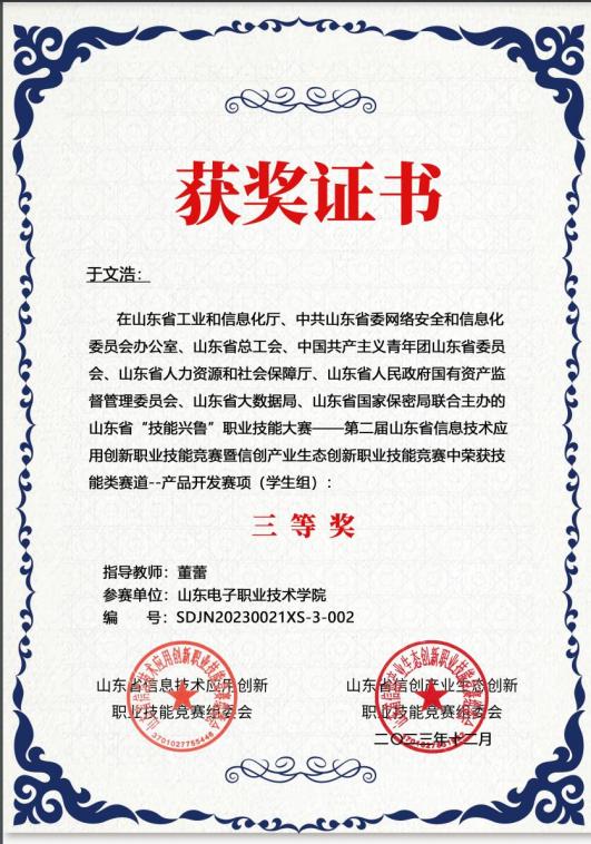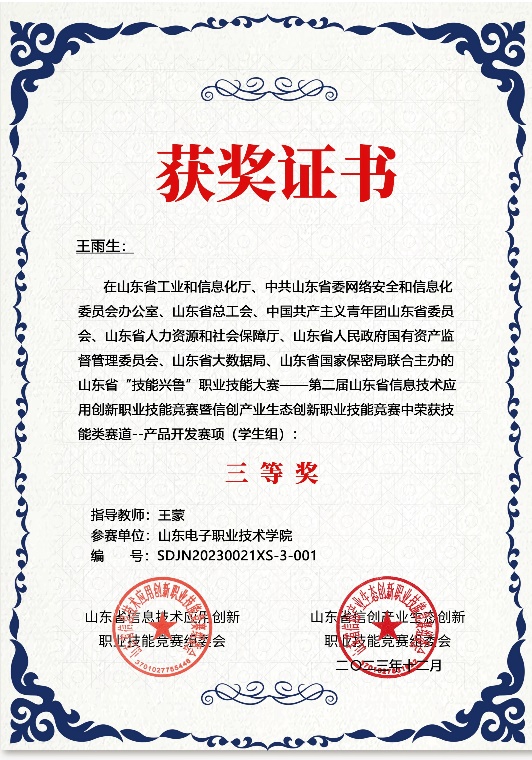 比赛获奖证书