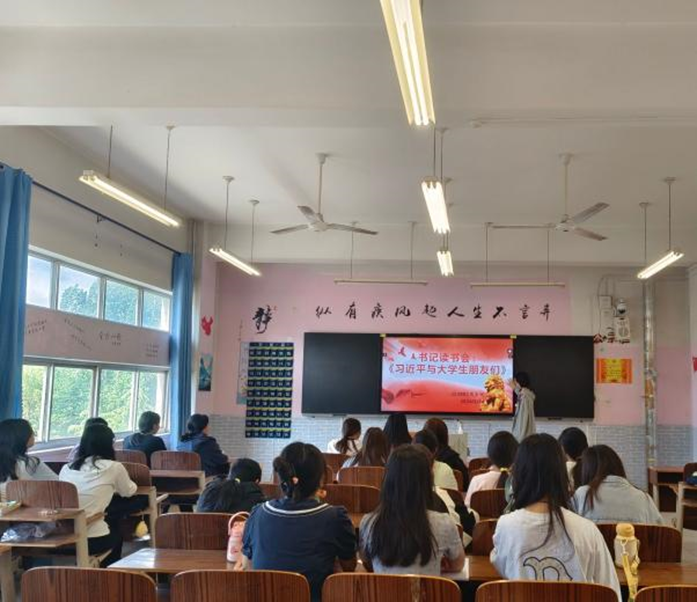 读书会围绕《习近平与大学生朋友们》开展相关主题学习,通过PPT讲解、影片欣赏、组织交流会、文章研读等多种形式,带领青年学习党的创新理论,感悟习近平总书记的领袖风范,引导青年自觉做习近平新时代中国特色社会主义思想的坚定信仰者、忠实实践者。