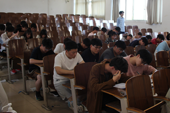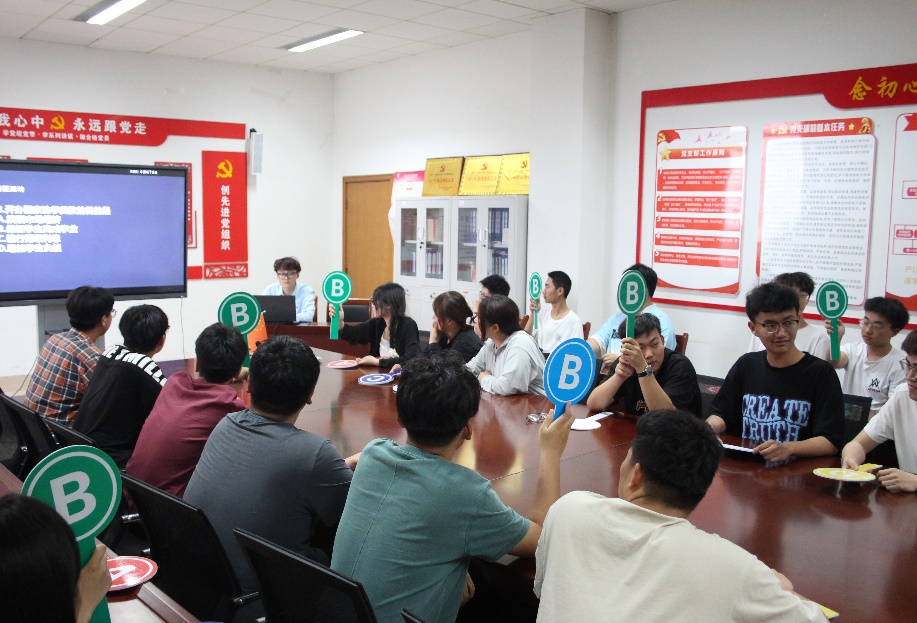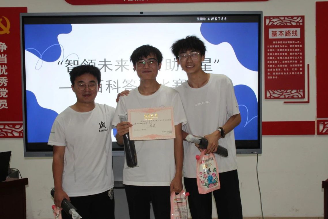 19支参赛队伍于阶梯二进行笔试,学生们全神贯注地阅读题目,团队协作,认真作答,经过严格的评阅,最终有8组选手成功晋级半决赛,半决赛采用抢答形式,在综合楼504室举行,每道题目发布后,各参赛队伍迅速举牌抢答,评委们负责计分,选手们沉着应对,展示了坚实的理论基础和稳定的心理素质,经过激烈的比拼,最终有三支队伍脱颖而出,成功晋级决赛。