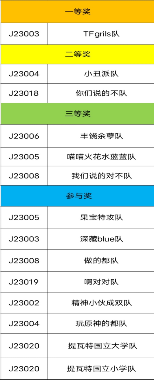 三等奖:J23005班的啪哺火花水蓝蓝队