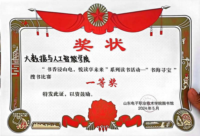 我院在“书香浸山电,悦读享未来”系列读书活动——“书海寻宝”搜书比赛中荣获一等奖。