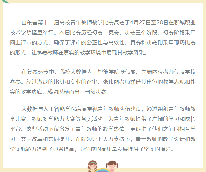 张伟丽老师成功晋级山东省第十一届高校青年教师教学比赛决赛。