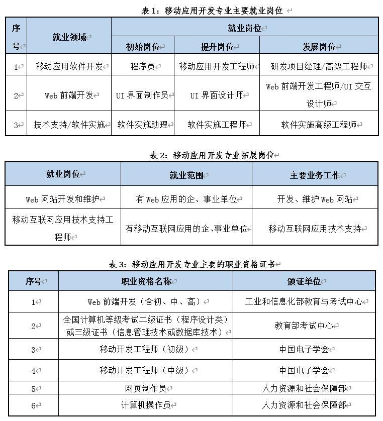本专业紧密对接位居10强产业之首的“新一代信息技术产业”产业,服务新旧动能转换,坚持立德树人、德技并修,面向移动互联网、物联网以及智慧能源、智慧工业、智慧医疗、智慧农业、智慧交通等行业企业,培养从事移动应用软件开发、Web前端开发、小程序开发、UI界面设计、技术支持和软件实施等 “高度紧缺岗位”的相关工作,具备良好的职业道德和职业生涯发展基础等素质,掌握软件开发所具备的计算机基本理论与知识,具备业界主流的移动互联网应用设计与开发技能和软件项目工程实践能力,培养德、智、体、美、劳全面发展的高素质技术技能人才。