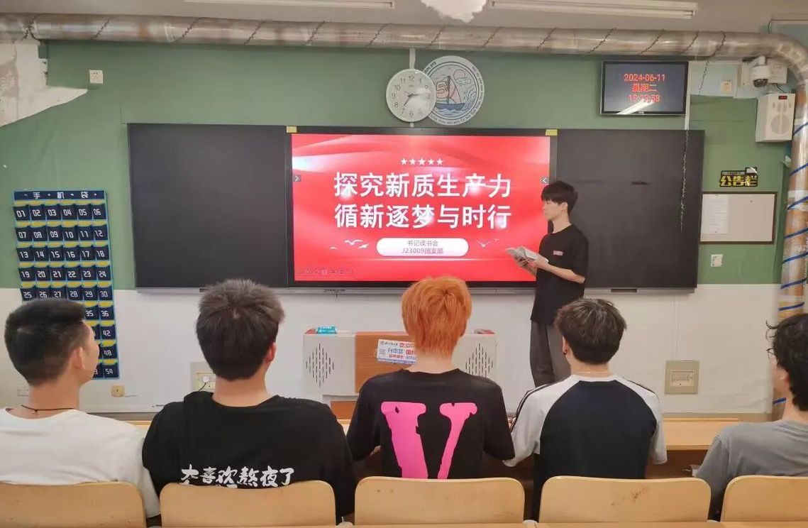 徐敏:6.11日,J23004班举办了一场以“探究新质生产力 循新逐梦与时行”为主题的书记读书。此次活动旨在通过深入学习和交流,进一步理解新质生产力的内涵与特征,探索其在我国的发展路径,为高质量发展提供理论支撑和实践指导。在读书会过程中,各位同学纷纷结合自身,分享了对新质生产力的理解和认识。同时,大家也表示将把学到的知识和经验运用到实际工作中去,为推动本地区新质生产力的发展贡献智慧和力量。
