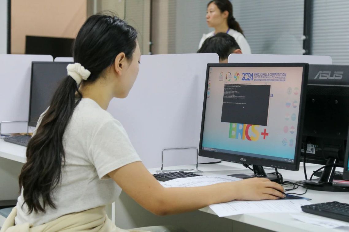 6月22日下午,大赛开幕式在学校报告厅举行,各参赛院校的领队、指导教师和参赛学生参加了开幕式和赛项说明会。6月23日,各参赛选手按照赛场规则依次进行了检录、加密等流程后确定工位,比赛各环节井然有序。专家裁判依据赛项规程认真评判,对参赛成绩进行评分和排序。大赛组委会将根据比赛结果,推荐优胜团队代表参加2024年金砖国家职业技能大赛中国区总决赛。