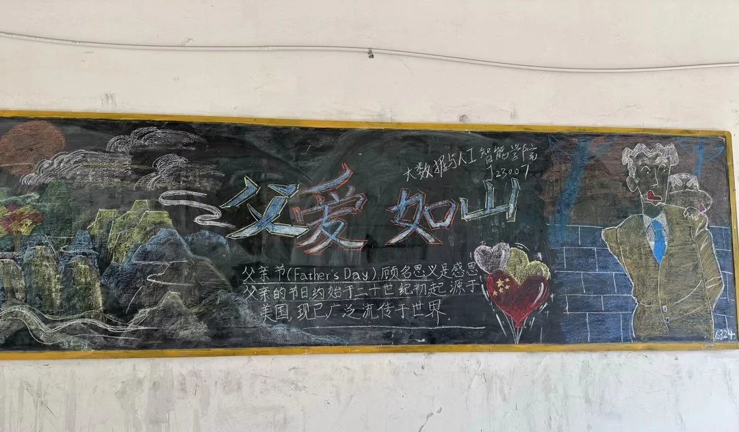 为加深学生对父爱伟大与无私的理解与尊重,同时展现他们对家庭与亲情的珍视与感恩,大数据与人工智能学院特开展以“父爱如山”为主题的板报设计活动。