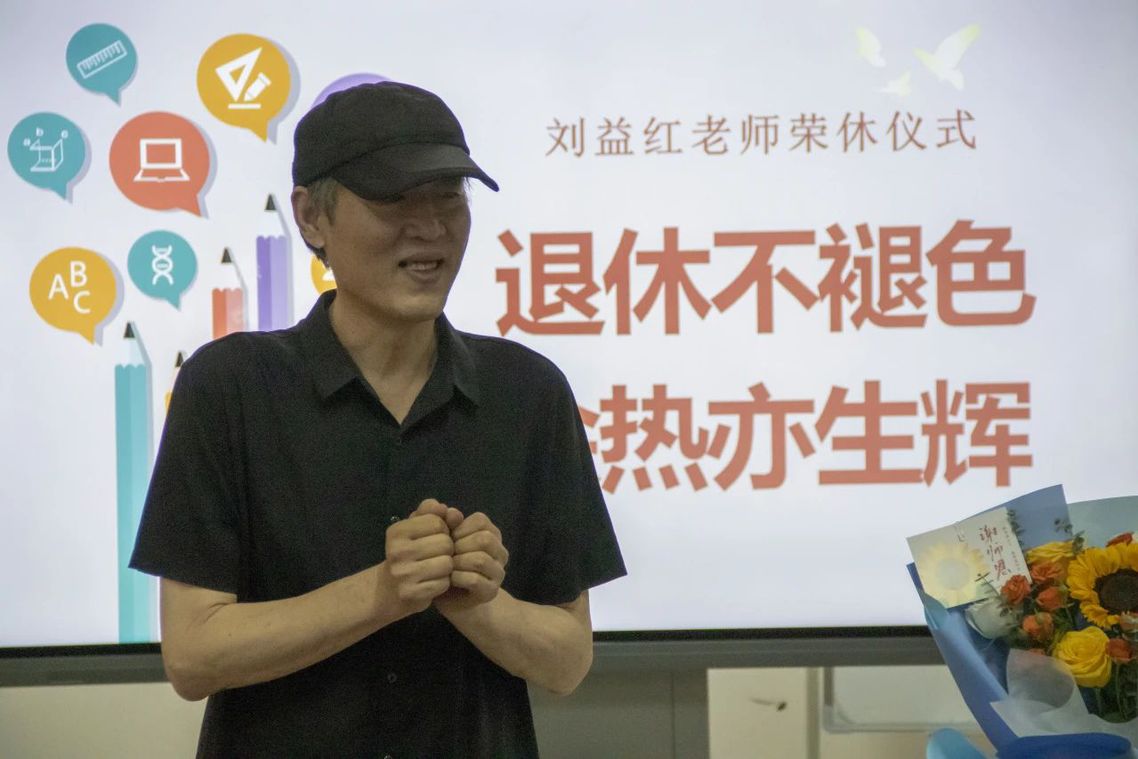 刘益红从1993年入校从事教育,热爱教育事业,师德高尚,是教师中的楷模。他以教师职业为荣,以教师事业为重,倾注全部心血教书育人。带领学生在全国大赛中取得多次傲人成绩。在荣休仪式上,刘益红深情地回忆了自己的教育生涯,讲述了在教学岗位上遇到的趣事和感人事迹。刘益红表示,教育事业是一项光荣而伟大的事业,能为祖国的未来培养人才是自己一生的追求。虽然退休了,但心中依然牵挂着讲台和学生们,希望能够在未来的日子里,继续为教育事业发挥余热。