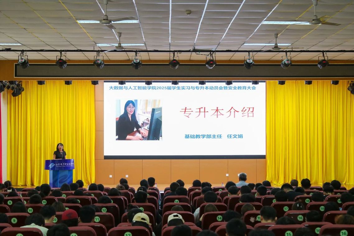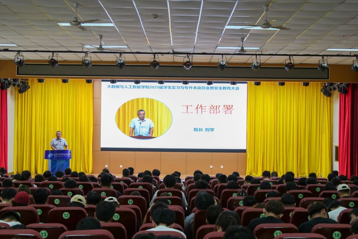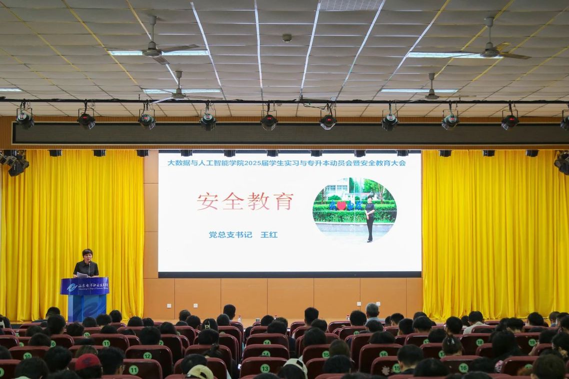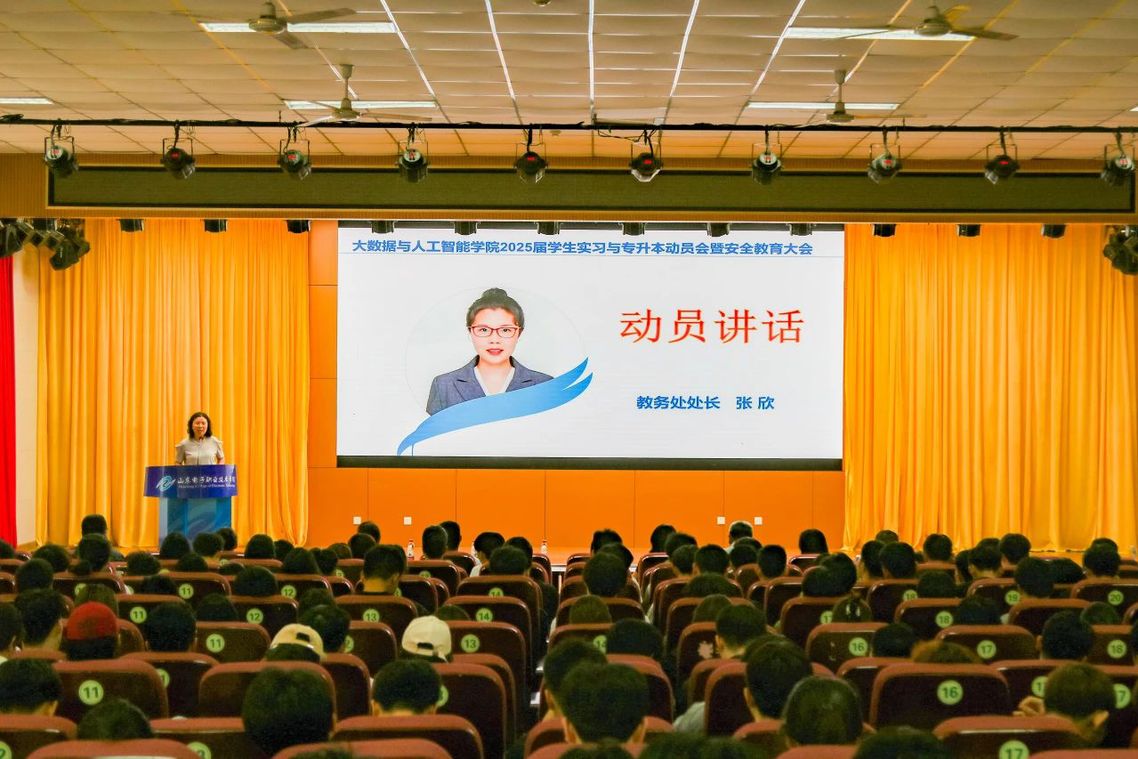 6月26日,大数据与人工智能学院在报告厅召开2025届学生实习与专升本动员会及安全教育大会。教务处处长张欣、基础教学部主任任文娟、大数据与人工智能学院院长刘学、党总支书记王红、全体辅导员及2025届毕业生参加了此次会议,会议由孙艳婷主持。