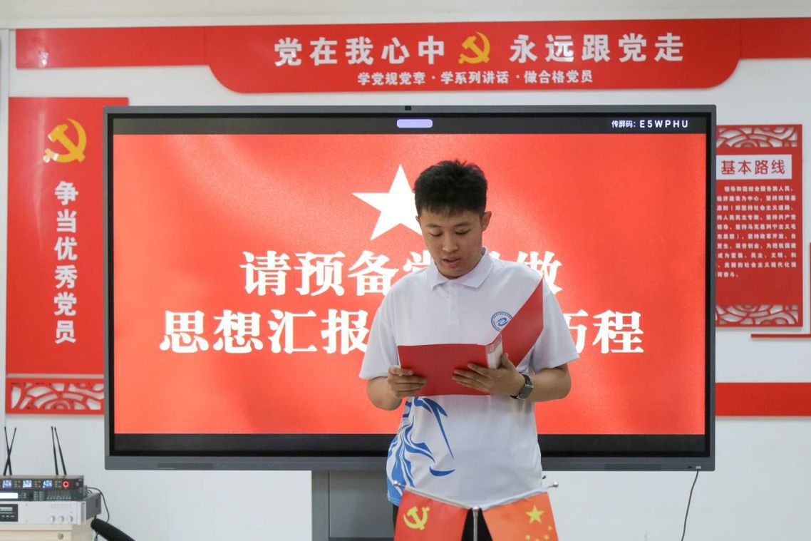 会上,李海彬勉励党员同志无论身处何方,都要保持对党的忠诚,为实现党的伟大目标不懈奋斗。六位预备党员分别做了思想汇报,分享即将奔赴下一个人生阶段的心路历程。学院领导老师亲切地为六位预备党员佩戴党员徽章。李荣辉带领全体党员重温入党誓词,铮铮誓言坚定了党员们的干事担当。王红也对党员提出了自律求实、积极发挥先锋模范作用的要求,党员们认真聆听,力争将党课所学转化为实际行动,为党和人民的事业努力拼搏。