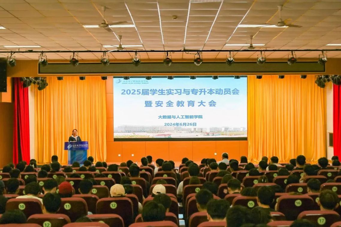 6月26日,大数据与人工智能学院在报告厅召开2025届学生实习与专升本动员会及安全教育大会。