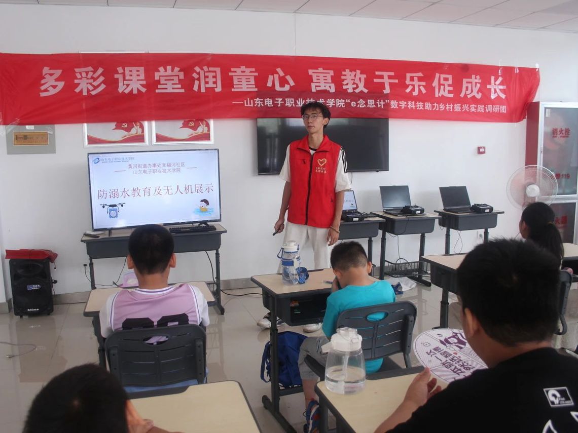 未来属于青年,希望寄予青年。为深入学习贯彻习近平新时代中国特色社会主义思想和党的二十大精神,秉承“大手牵小手 青春共成长”的宗旨,以“希望课堂”为阵地,充分发挥青年学生主观能动性,7月26日,我院“e念思计”实践调研团采用“少儿+科普”的教育新模式,为黄河街道开展“无人机技术”精彩展示活动与“珍爱生命,预防溺水”防溺水安全教育讲座。