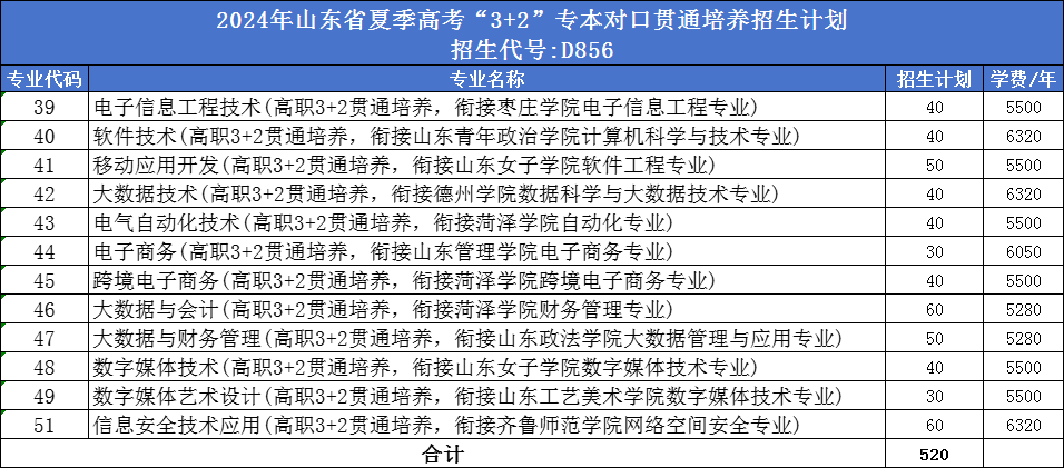 在山东省招生3882人,其中夏季高考统招2278人(含“3+2”专本贯通班、中外合作办学)、春季高考统招1000人、单独招生604人。