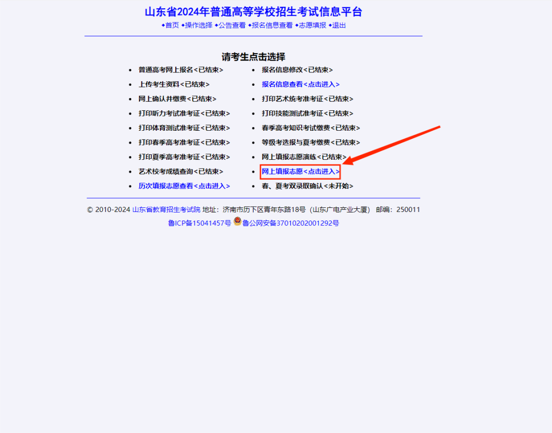 第四步:点击“网上填报志愿<点击进入>”(大数据与人工智能学院 图文:山东电子职业技术学院)