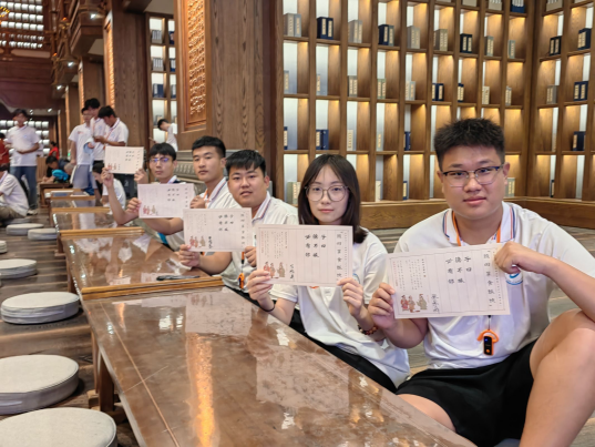 “半部论语治天下,一句箴言晓古今”,研学团成员们通过“手读论语”,在抄写速度的缓急变化中,领悟其中的禅意,体会快与慢的妙处,品味成功后的一刹惊艳。在灯光秀表演中,每位成员都被深深地震撼了。随着光影的流转与变幻,论语中的智慧与教诲仿佛穿越千年时光,以一种前所未有的方式展现在我们的眼前。那些古老而深刻的语句,在灯光的映衬下,不仅焕发出新的生命力,更让我们深切感受到了其中蕴含的深厚文化底蕴和人生哲理。