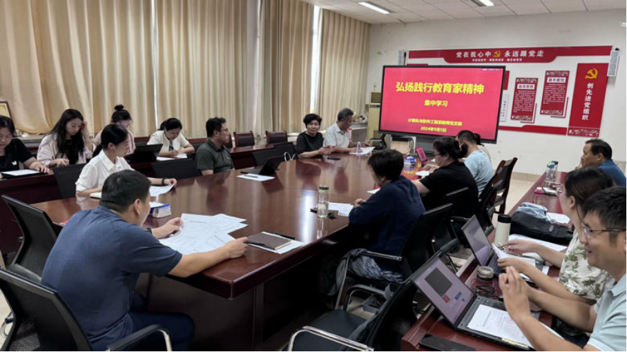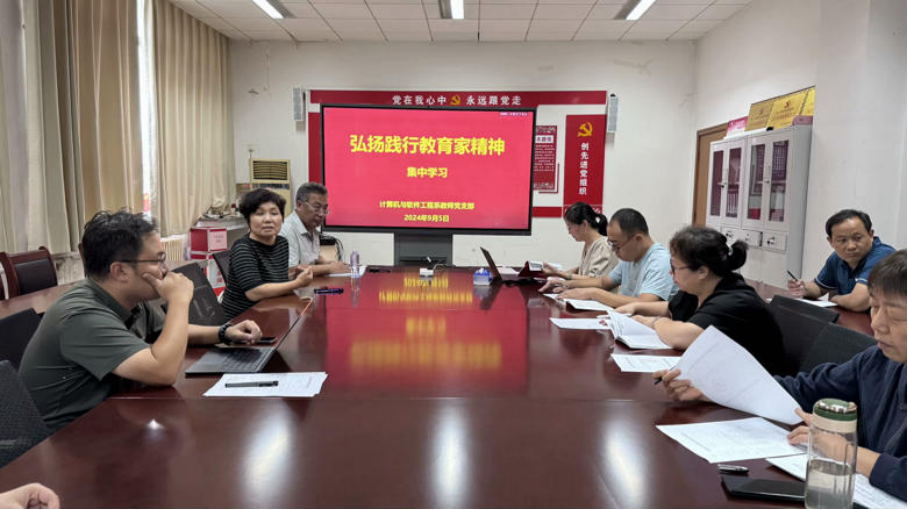 为全面理解和把握教育家精神,教育引导党员铭记入党初心,坚定理想信念,永葆党员本色,于2024年9月5日下午,计算机与软件工程系全体党员在504举行了“弘扬践行教育家精神”主题党日活动,活动由张雪华主持。