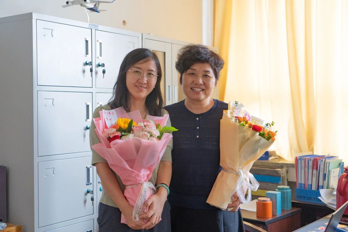 上午,学生们伴着和煦的春风,为王红书记、刘学主任和辅导员送上感恩的花束。