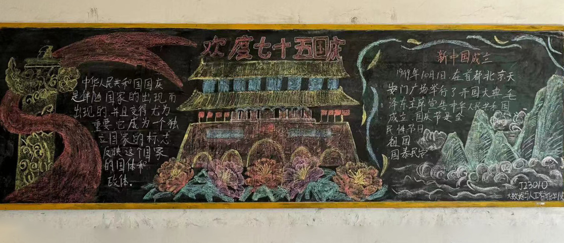 为庆祝新中国成立七十五周年,弘扬爱国主义精神,大数据与人工智能学院开展“庆祝新中国成立七十五周年”主题板报设计活动。同时开展“我与国旗合个影”征集活动,进一步培育我院学生的爱国热情。