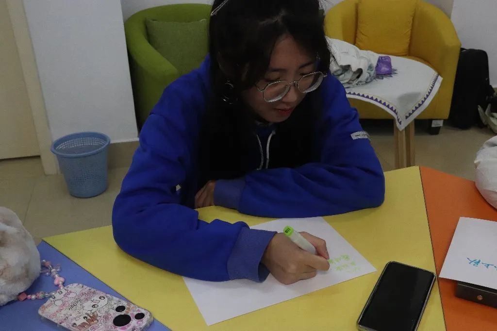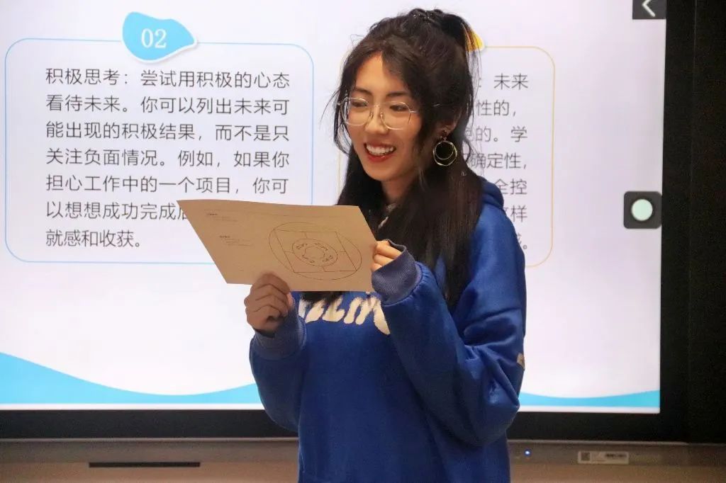 主持人深入浅出地阐述了“超前焦虑”的定义及其潜在危害,为同学们揭开了这一心理现象的神秘面纱。接着在“写下焦虑,直面焦虑”环节,同学们扪心自问,大胆书写,使大家勇于正视问题根源,将焦虑具象化。主持人巧妙引导同学们深入思考焦虑的正向意义,引领他们将头脑中的焦虑转化为推动进步的高效动力,进而凸显焦虑存在的积极价值。在主持人的悉心引导下,同学们循序渐进,一步步成功将个人焦虑逐一化解。令人欣喜的是,同学们突然发觉,对于那些令人忧心忡忡的问题,此刻已然豁然开朗,不仅重新获得了全新的认识,还找到了更好的解决方案。由此,学生们切实掌握了勇于主动思考问题的能力以及面对焦虑的平和心态,促使他们极大地增强了战胜消极情绪的信心,对未来满怀激情。