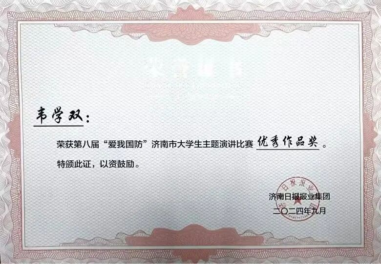 我院学生韦学双《强我国防,在军营书写绚烂无悔的青春》获得“优秀作品奖”。