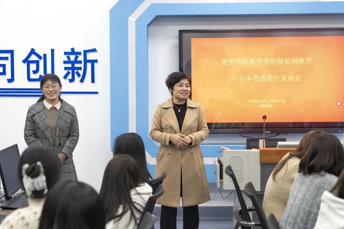 为加强与本科院校的交流合作,帮助2024级“3+2”专本贯通班新同学明确学习路径,坚定目标,尽早规划。11月1日——2日,大数据与人工智能学院邀请山东青年政治学院信息工程学院院长宁玉富、德州学院数学与大数据学院院长刘艳芹分别为2024级软件技术专业、大数据技术专业“3+2”对口贯通分段培养的学生作入学教育讲座。大数据与人工智能学院院长刘学、党总支书记王红、管理干部、辅导员代表共同参加。