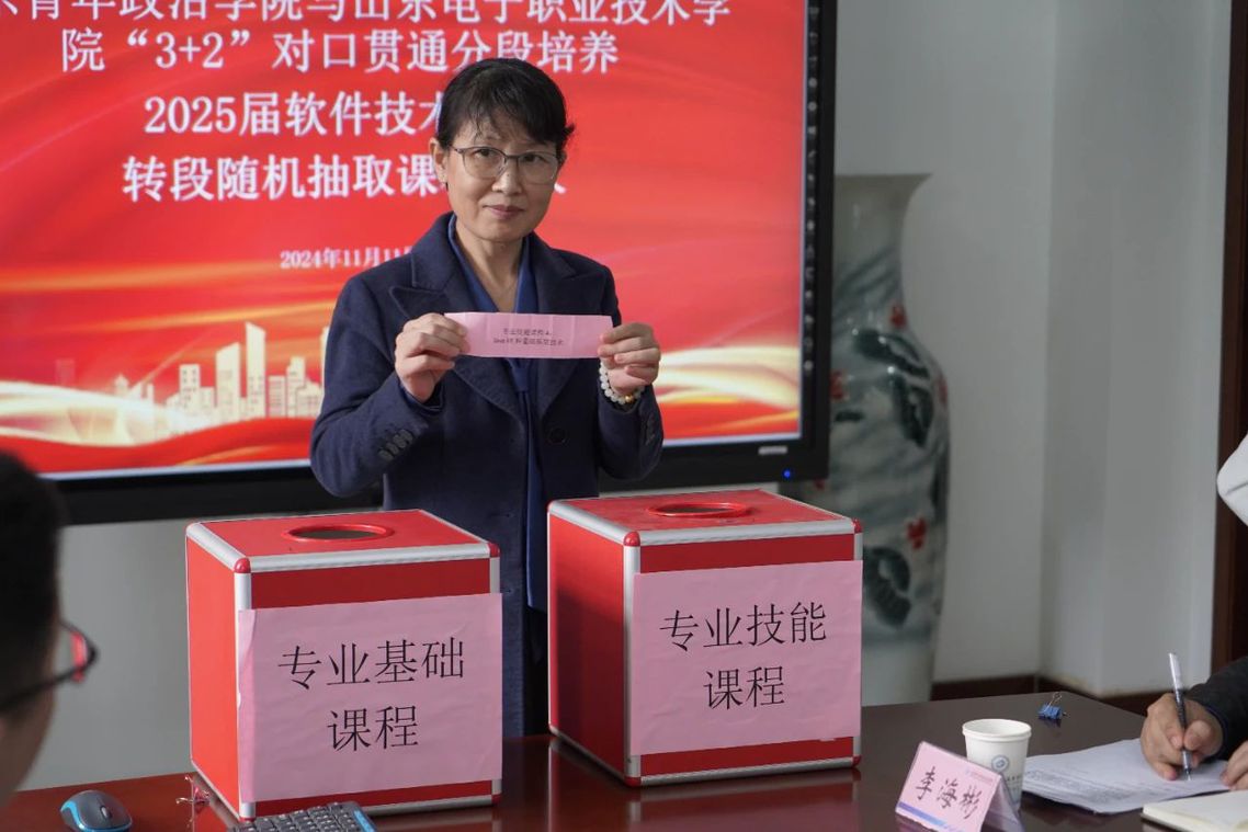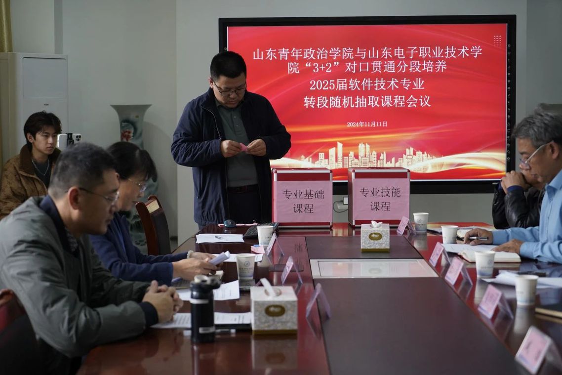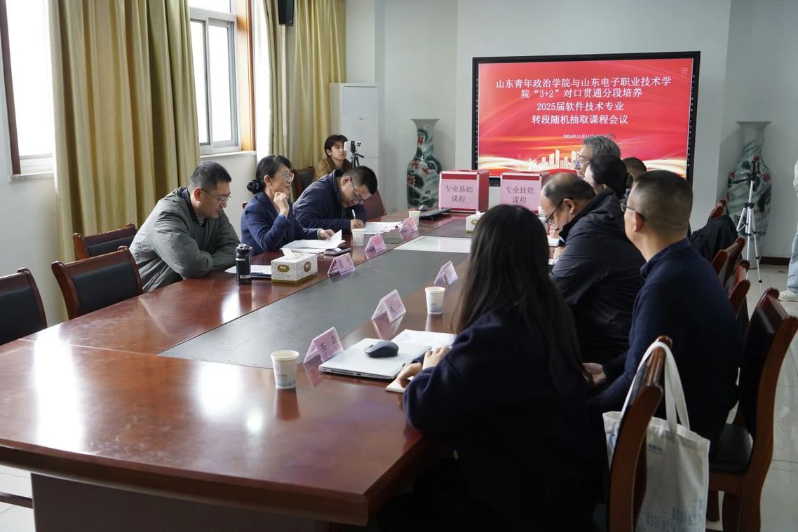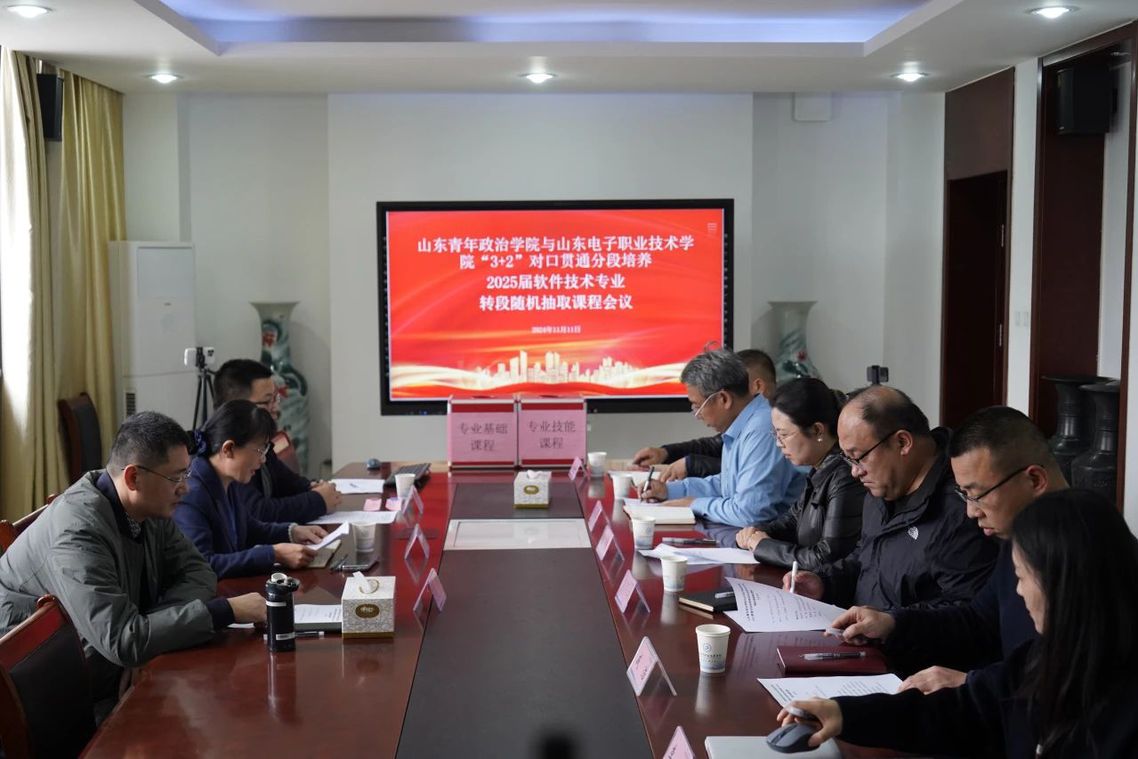 为进一步强化专本衔接,提高人才培养质量,改进教学方法。11月11日,山东青年政治学院与我校在210会议室召开2025届软件技术专业转段考试随机抽取课程会议。