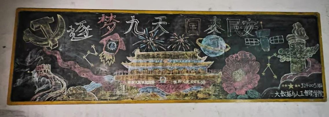 为庆祝国家航天事业的辉煌成就,同时加深学生对国家航天梦想与爱国主义情怀的理解与认同,大数据与人工智能学院开展“逐梦九天,国泰民安”主题板报设计活动。