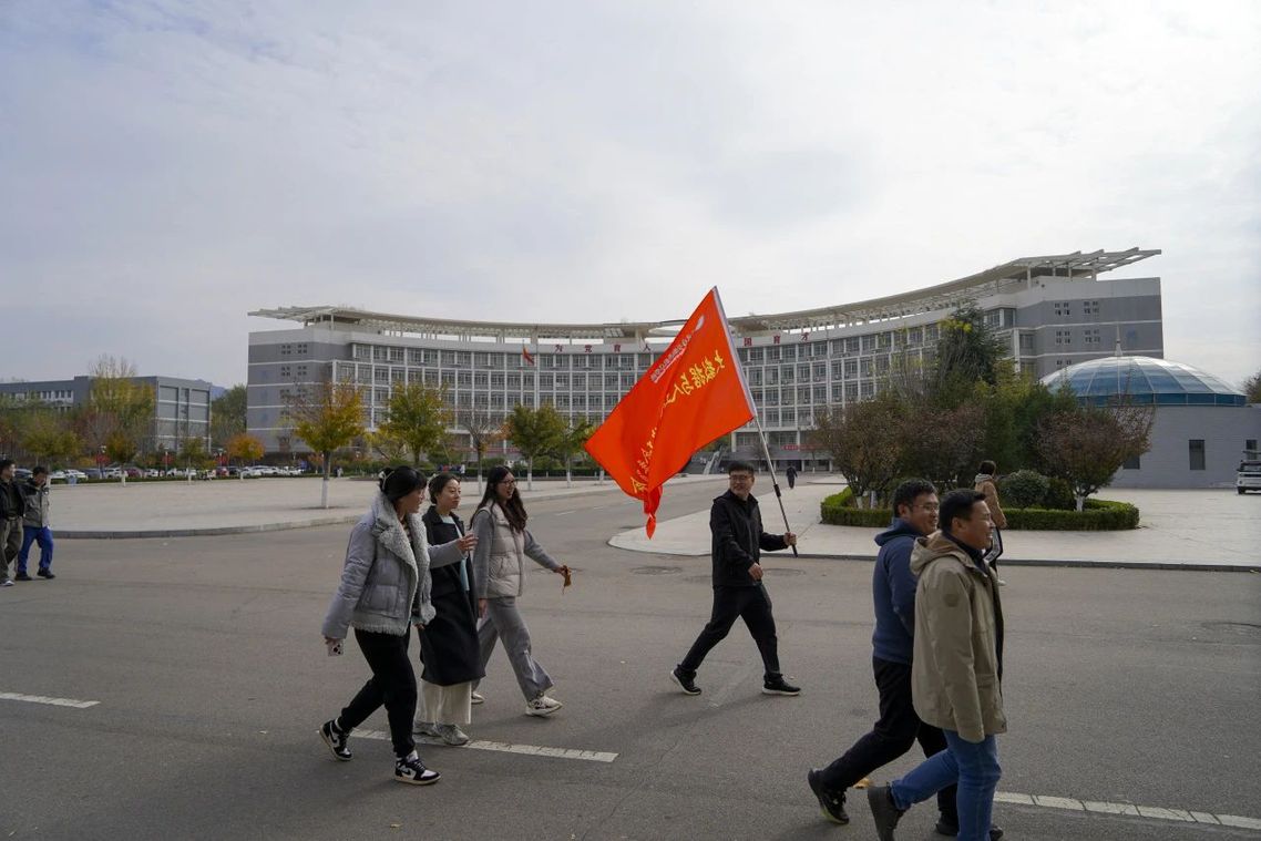 稍作停留后,大家继续前行,依旧迈着整齐轻快的步伐,穿梭在校园街角,欣赏着初冬校园的别样的景致,大家彼此交流工作心得,尽情享受运动带来的愉悦与放松,每个人的脸上都洋溢着惬意的笑容。
