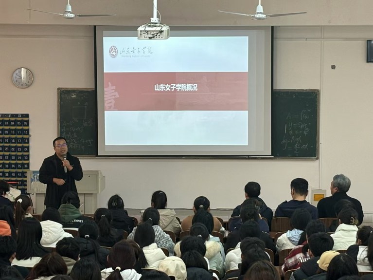 山东女子学院招就处副处长杨东和山东女子学院数据科学与计算机学院院长孙洪峰分别介绍了山东女子学院的历史沿革、办学理念,数据科学与计算机学院的专业特色、师资队伍、教学成果、科研建设和学生工作等情况,勉励同学们树立专业信心,明确未来目标,锤炼扎实本领。他们的谆谆教诲如同温暖的阳光,照亮了学生的未来之路,个个斗志昂扬。