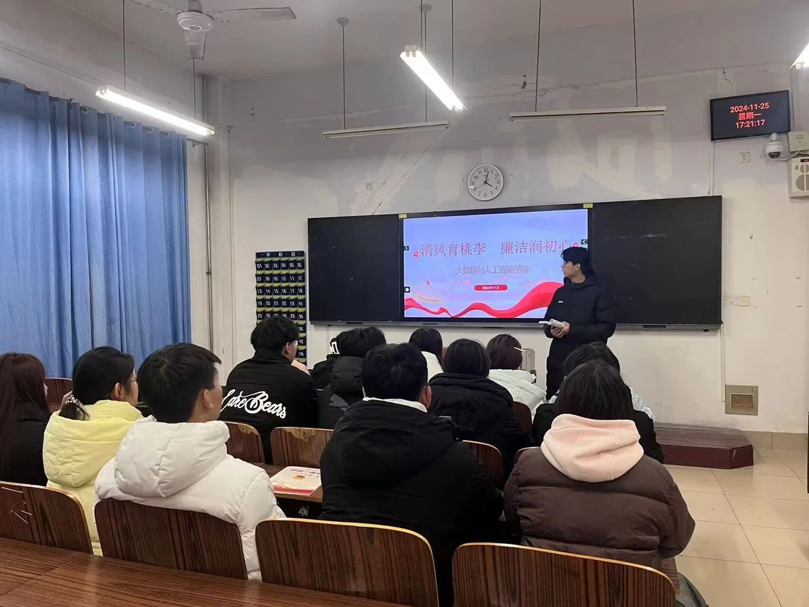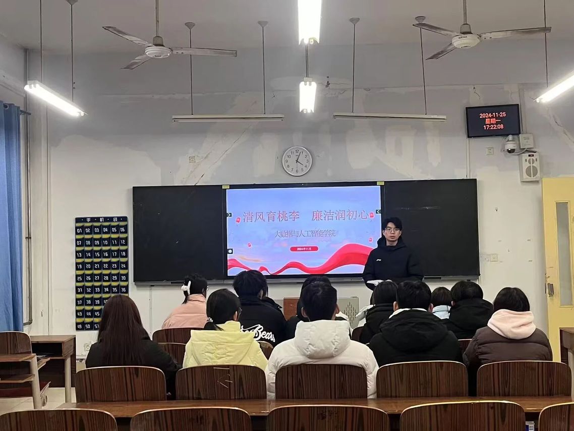 此次团日活动不仅为我院营造了风清气正的廉洁校园氛围,更引导学生成为廉洁文化的积极传播者与坚定践行者,激励他们从自身做起,从小事做起,同时也通过学生的辐射作用,带动家庭与社会对廉洁文化的重视,引领社会风尚朝着清正廉洁的方向不断迈进,为推动全社会的廉洁文化建设增添了一份青春力量。(大数据与人工智能学院 图文:组织部)