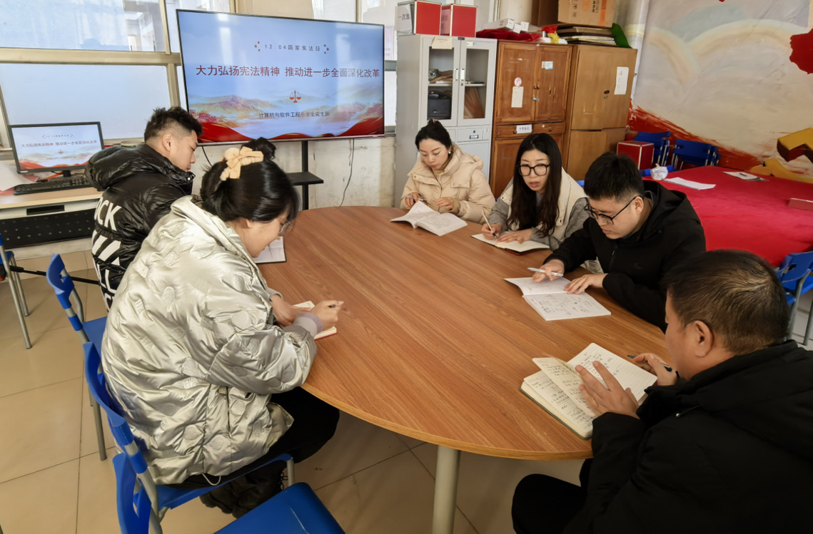 12月4日上午,计算机与软件工程系学生党支部组织开展“学习尊崇宪法、弘扬宪法精神”主题党日活动,学习宪法知识,弘扬宪法精神,维护宪法权威。2024年12月4日是第十一个国家宪法日,12月1日至7日是我国第七个“宪法宣传周”。为深入学习贯彻习近平法治思想和习近平总书记关于宪法的重要论述,坚定维护宪法权威和尊严,加强学习宣传教育,强化宪法意识,弘扬宪法精神,推动宪法精神入脑入心。