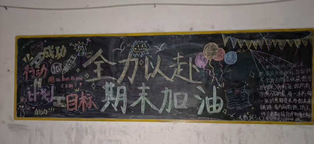 为全力共赴期末备考,鼓舞学生的学习士气,同时加深学生对学习重要性及集体努力意义的理解与认同,大数据与人工智能学院开展“全力共赴,期末加油”主题板报设计活动。