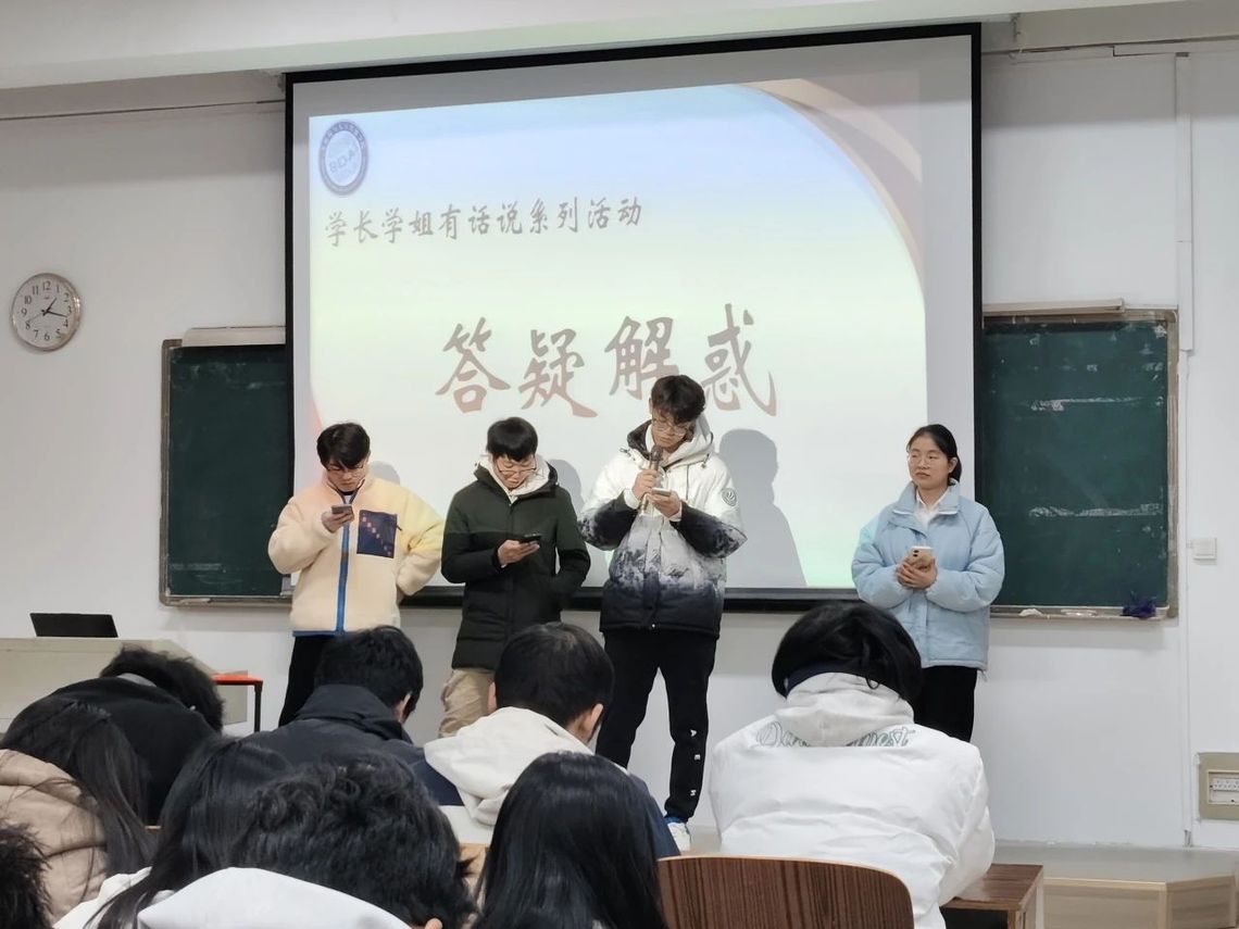 随后的答疑交流环节将分享会推向高潮。学弟学妹们踊跃举手提问,将学业上的疑难、竞赛的准备策略、实习的注意事项以及就业的困惑等问题一一抛出。受场地限制,未亲临现场的同学也不甘示弱,通过直播弹幕的形式参与互动。他们四人结合自身经历,分工协作,耐心解答,为同学们拨云见日,使大家收获满满。