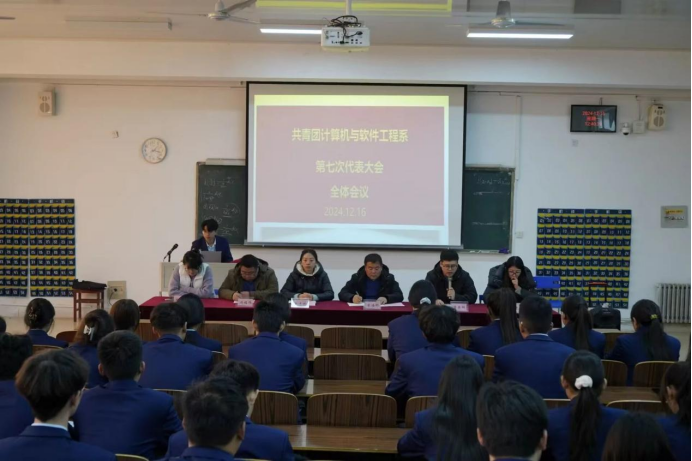 12月16日,青春逢盛会,奋斗正当时。共青团计算机与软件工程系第七次团员代表大会在阶梯一教室顺利召开。