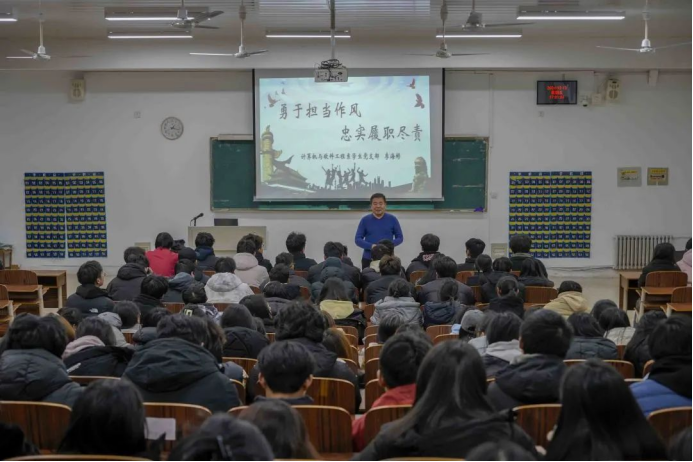 为深刻领会中国共产党人精神谱系的丰富内涵,培育学生担当尽责的精神,引领大数据与人工智能学院入党积极分子砥砺前行,我院于阶梯一教室开展了一场以“勇于担当作风,忠实履职尽责”为主题的党课。
