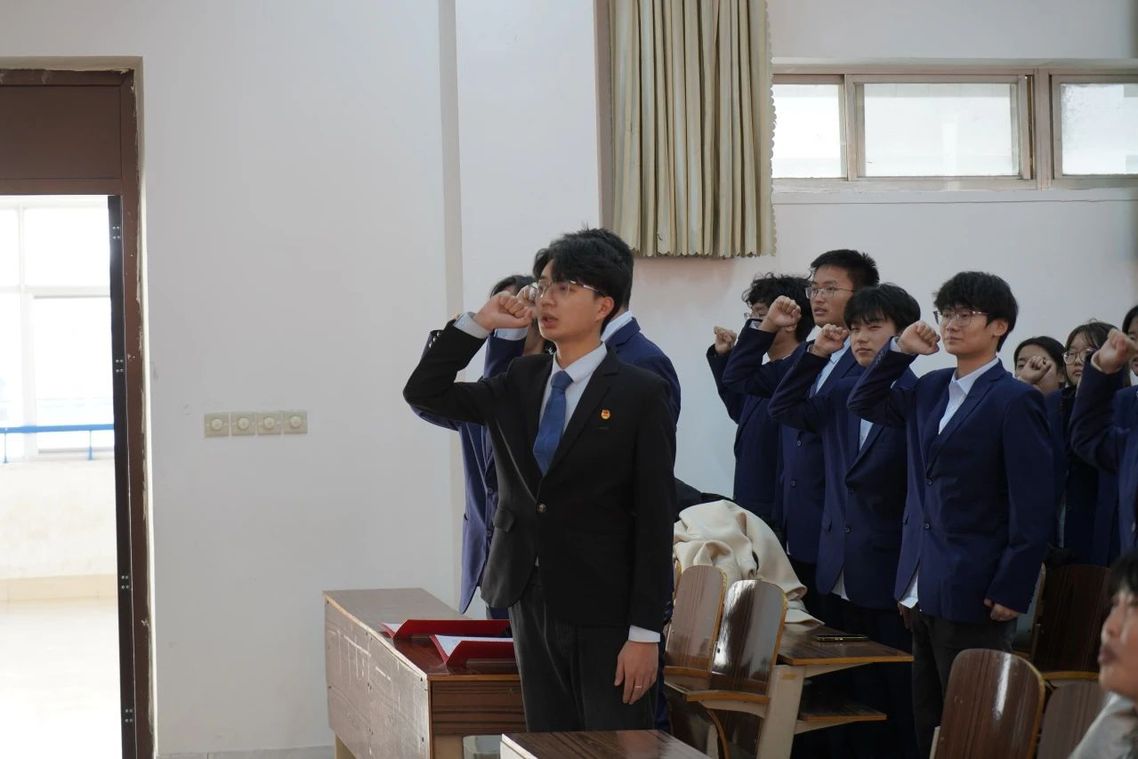 入团仪式在庄严激昂的国歌声中拉开序幕。随后,申玥宣读新团员名单,宣告着新一批学生正式加入共青团,开启人生新征程。紧接着,李海彬与全体辅导员一同为新团员们佩戴团徽。闪耀在胸前的团徽,象征着责任与使命的传递。