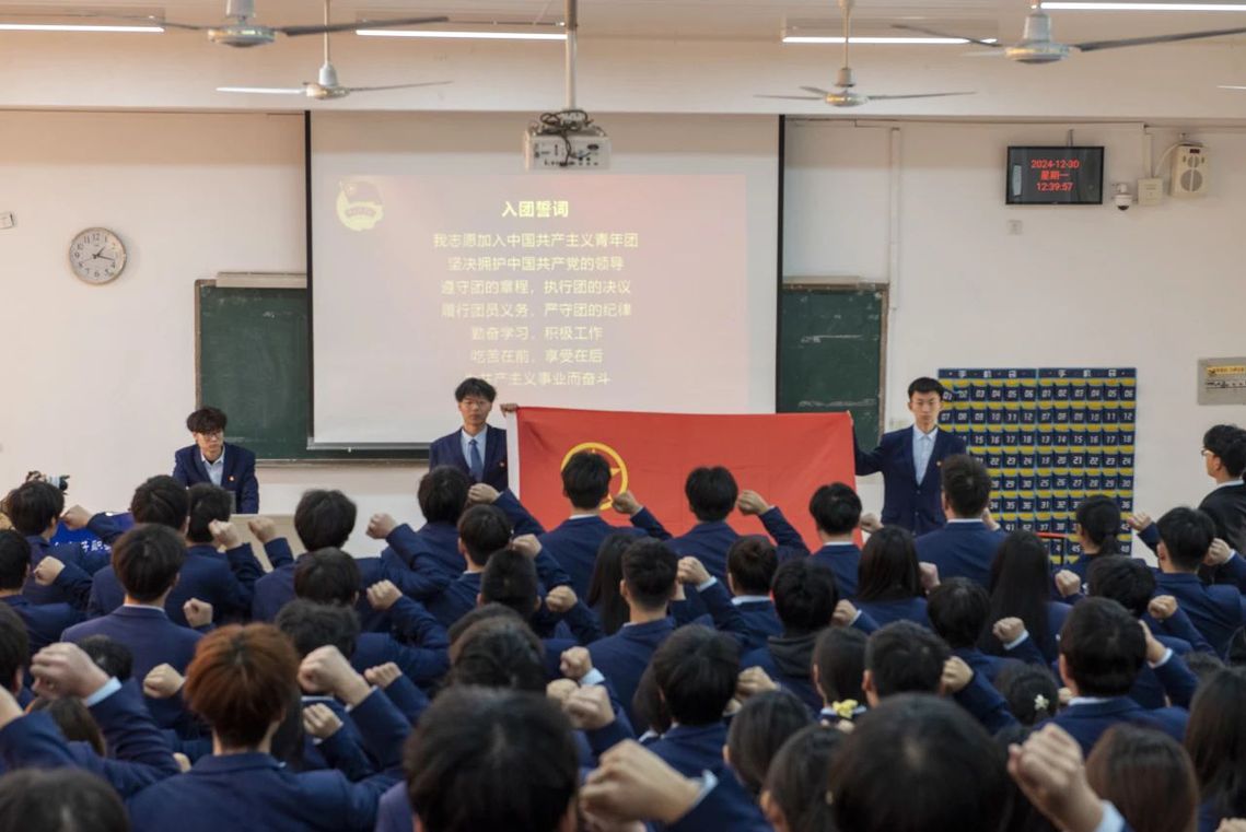 宣誓完毕,优秀团员代表张景岳发言。他希望同学们树立正确的世界观、人生观和价值观,心怀理想信念,关注国家大事,提高政治觉悟,发挥先锋模范作用。新团员代表王启源在发言中表示,将以入团为契机,牢记共青团员的使命与担当,用青春的激情与汗水,书写属于这一代人的辉煌篇章。