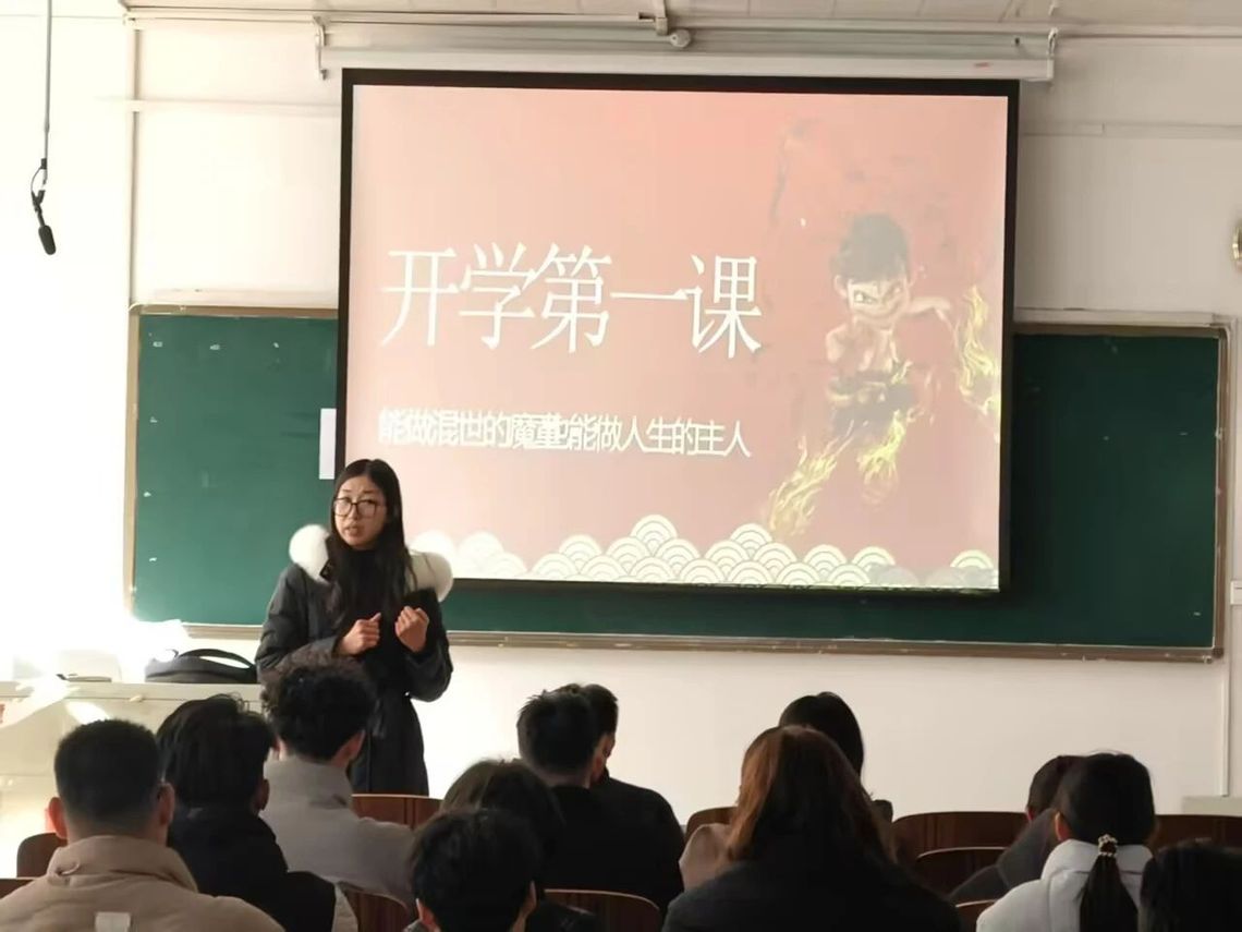 班会借《哪吒2》票房破百亿的热点,以“撕‘魔丸’标签,破‘穿心咒’”等影片主题激励学生突破自我限制。影片集结了全国138家动画公司、4000余名创作者,展现了“万龙甲”般的集体力量。辅导员通过这一案例,引导学生将“我命由我不由天”的信念融入学业规划之中。