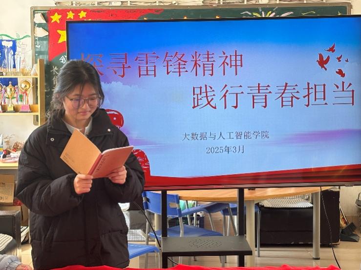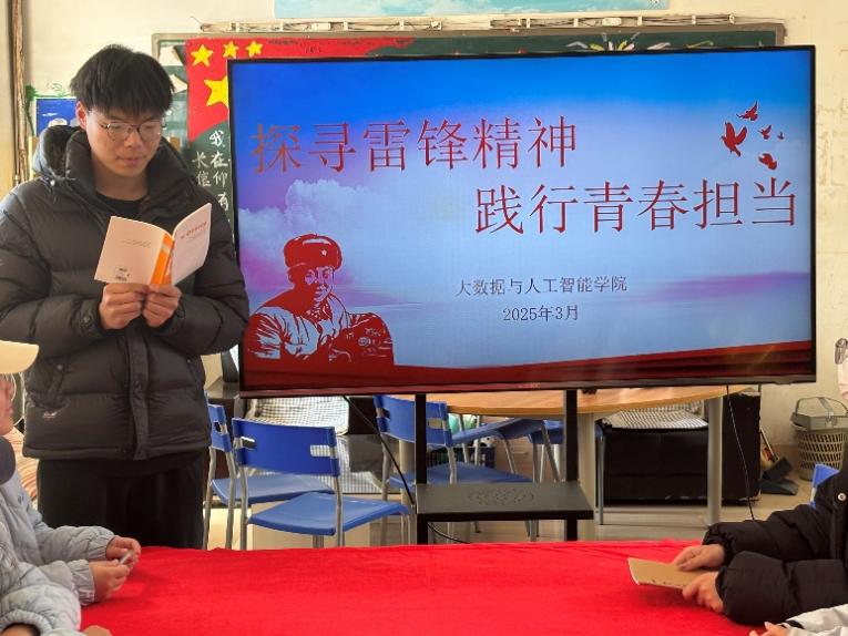 为弘扬雷锋精神的重要论述,引导青年学子传承红色基因,厚植家国情怀,3月2日大数据与人工智能学院在2103教室举办 "探寻雷锋精神 践行青春担当"书记读书会主题活动。组织部带领各班团支书齐聚一堂,通过理论学习、案例分享、实践倡议等形式,共同感悟雷锋精神的时代内涵。